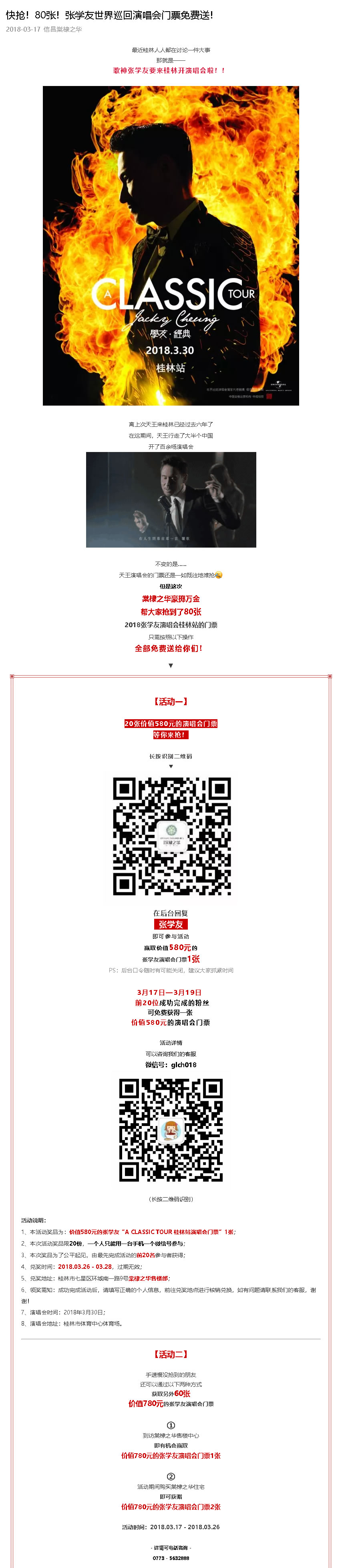 快搶!80張!張學(xué)友世界巡回演唱會門票免費(fèi)送!
