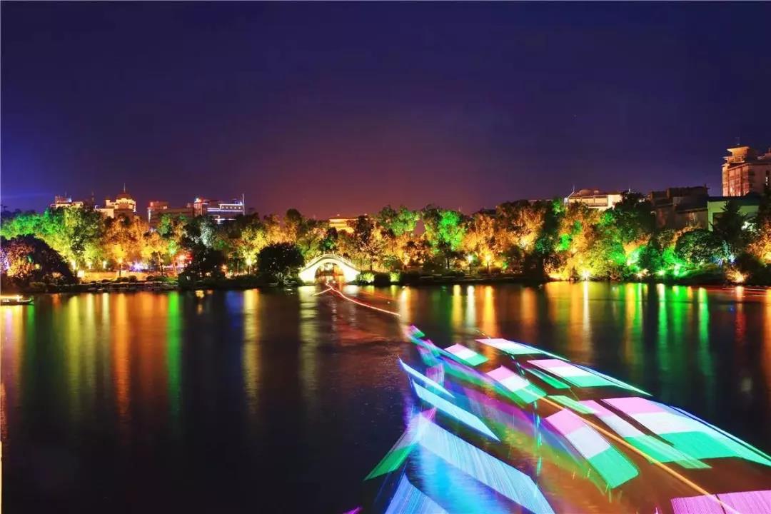 絢麗多彩的燈光映射出如夢如幻的漓江之美