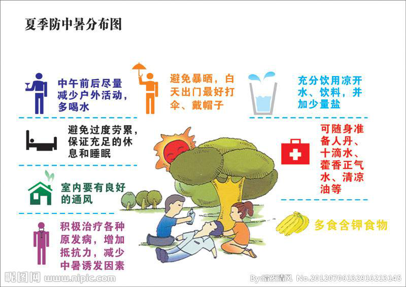 夏天來了,天氣炎熱,對于工程部人員來說,防暑最重要,前兩天部門員工因中暑住院了,所以,在網(wǎng)上摘抄了幾點防暑知識。如下: